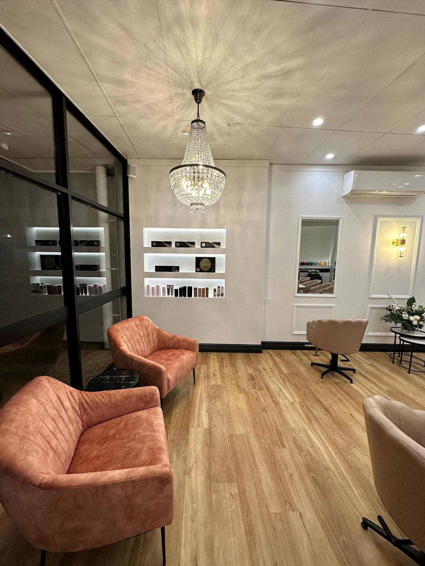 The decision to advise against the bold colour led to a thoughtful selection that met the clients' vision while mitigating potential lighting issues, creating a harmonious and stylish ambience for the salon.