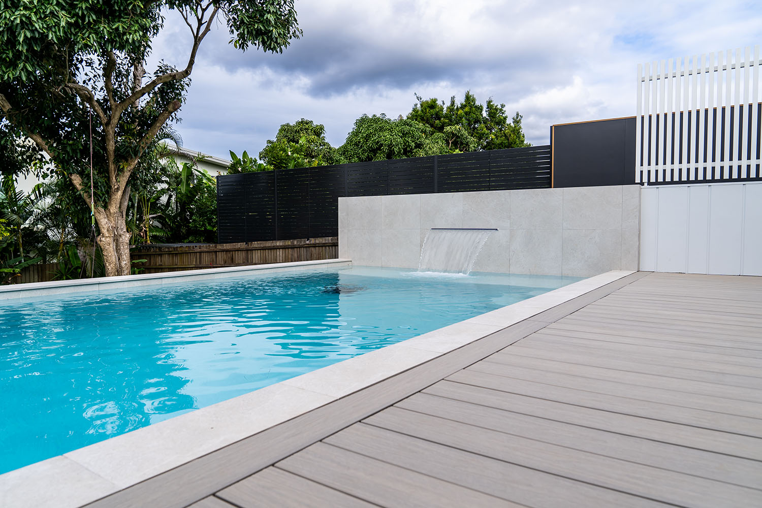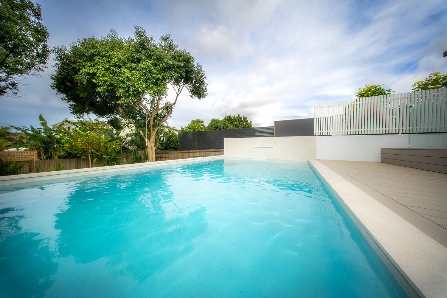 The outdoor area features a brand-new concrete pool with a minimalist water feature, composite decking, and frameless glass fencing — balancing both compliance and aesthetic appeal. Inside, the open-plan living space was styled with natural, budget-friendly finishes that offer warmth and functionality, including a spacious master suite with oversized windows and a walk-through robe.