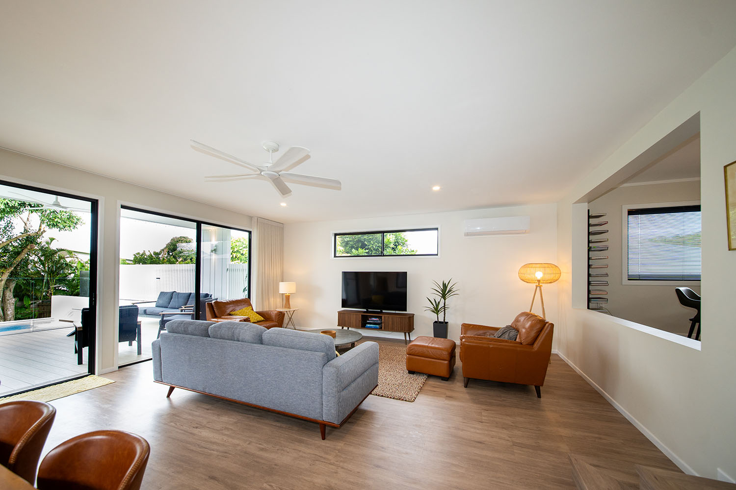 This Buderim project saw the transformation of an existing home into a modern, light-filled family retreat. We extended the property to include two new bedrooms, a bathroom, and a contemporary laundry — all designed to blend seamlessly with the original structure. Floor-to-ceiling glass was used throughout to maximise natural light and create an open, airy feel.